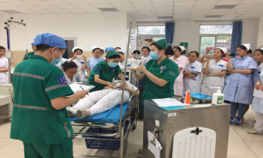 为加强护理安全管理,增强护士风险防范意识,提高全院护理人员对紧急、突发事件的应对能力,2017年6月29日19:00,由护理部精心策划,统一组织,4个护理单元共同参与,156名医护人员参加的一次全院性的大型应急演练在康复大厅拉开战场。